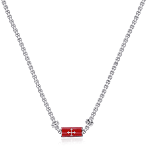 Collana in acciaio con pendente con motivo nautico e smalto rosso.